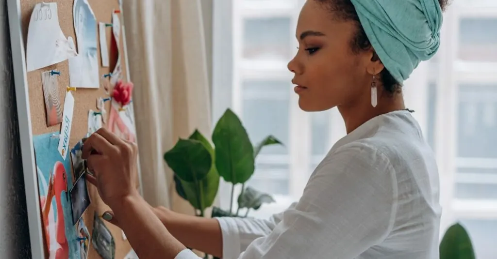 Creating a vision board visually represents aspirations and dreams. Including images, quotes, and symbols that resonate captures individual preferences and goals. This creative process encourages a tangible connection to ambitions, making them more compelling. Placing the vision board in a daily view reinforces the commitment to personal aesthetic. Regularly revisiting and updating the board keeps goals aligned with evolving values, ensuring dynamic representation of aspirations. Engaging with the vision board motivates intentional actions, shaping a life that reflects desired outcomes.